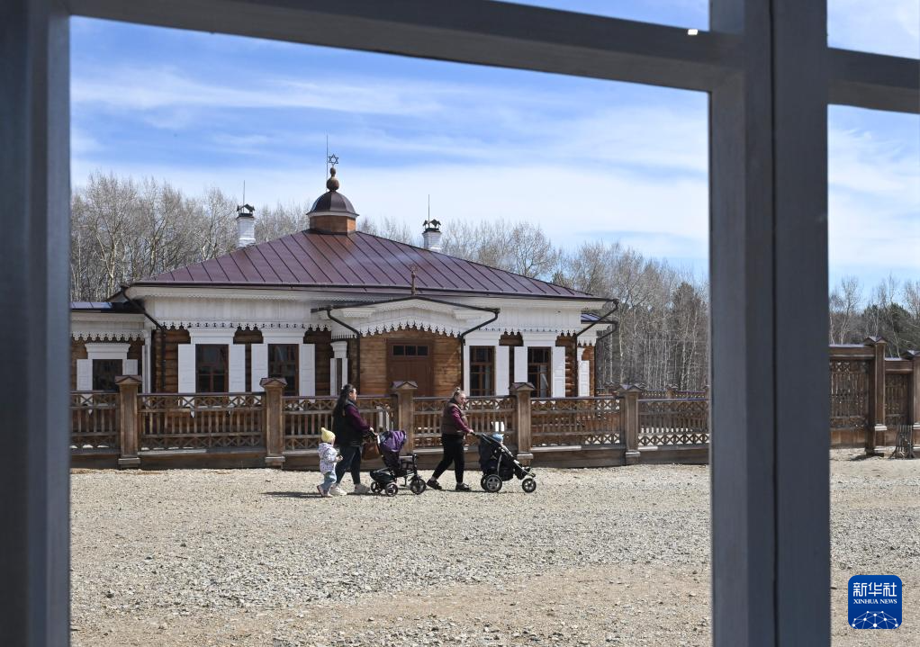 4月28日,游客在俄罗斯伊尔库茨克民俗建筑博物馆内参观。