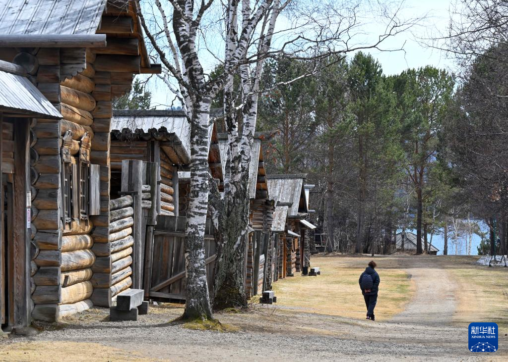 4月28日,游客在俄罗斯伊尔库茨克民俗建筑博物馆内参观。