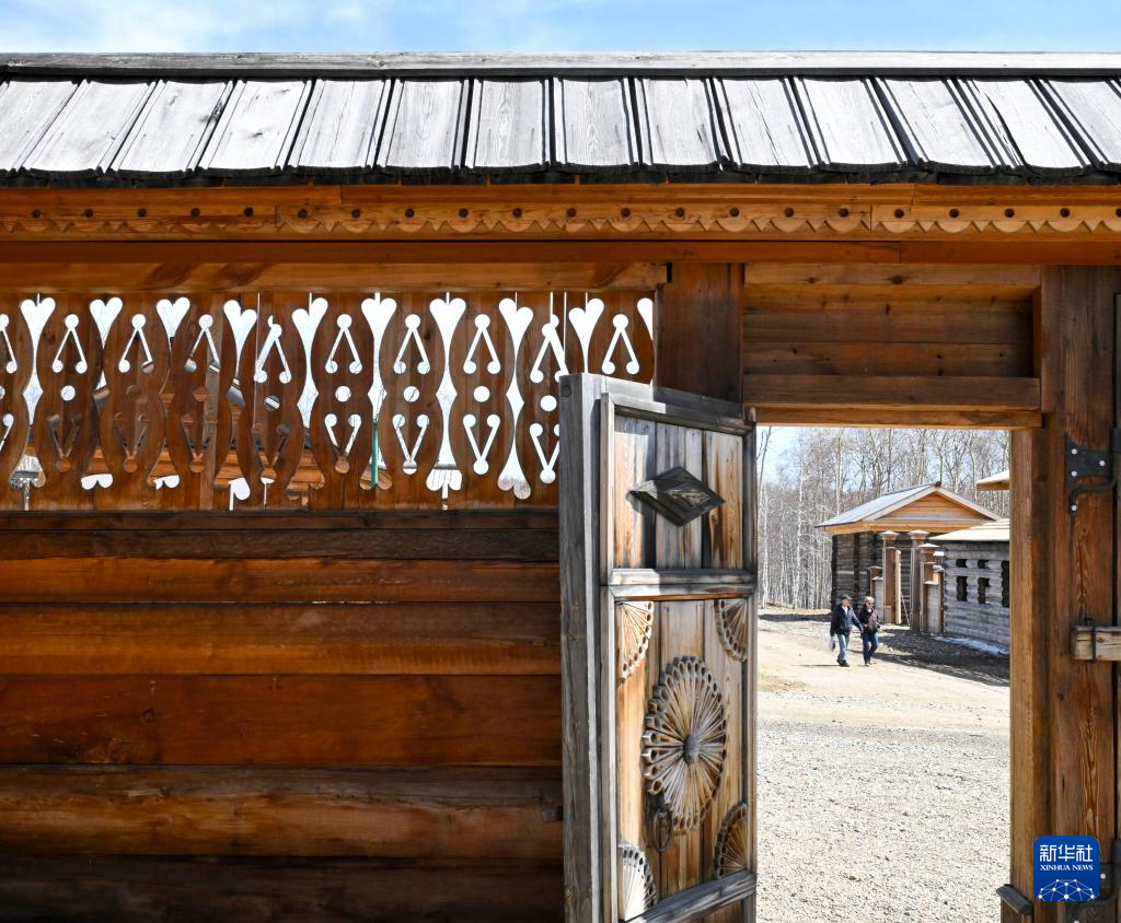 4月28日,游客在俄罗斯伊尔库茨克民俗建筑博物馆内参观。