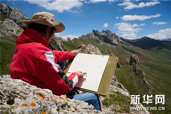 西藏中国高原画派研究院院长、西藏自治区美术家协会名誉主席唐天源拍摄美景,搜集创作素材
