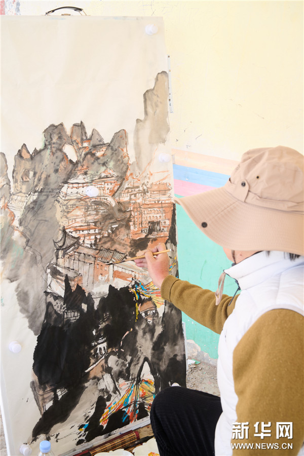 新华网昌都6月22日电(常宁 邢贺扬)6月21日,“文化西藏 天上画卷”高原高峰艺术家西藏行写生活动走进昌都市丁青县。唐天源、何加林、岳黔山、丁杰、梁明、顾平、陈琪、吴琳等知名艺术家在孜珠寺及沿途,现场写生演奏,用画笔描绘西藏之美,千年箜篌奏响雪域高原。