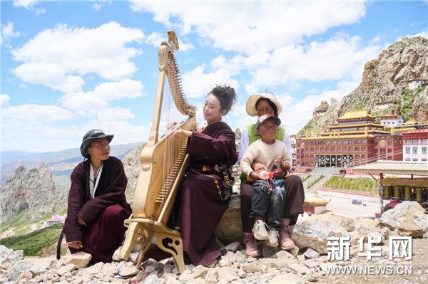 中央民族乐团著名箜篌演奏家吴琳为藏族同胞现场演奏箜篌