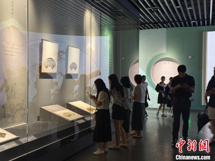 中新网南宁7月10日电 (张广权)7月10日,广西壮族自治区博物馆内,76件明清扇面山水珍品集中呈现,吸引游客驻足围观。